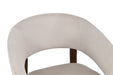 Die stabilen Metallfüße in Walnussholz-Optik setzen einen warmen, natürlichen Akzent und bilden einen eleganten Kontrast zum hellen Samtbezug. Dadurch lässt sich der Chloe Stuhl perfekt in verschiedenste Einrichtungsstile integrieren – von modern über skandinavisch bis hin zu klassisch.